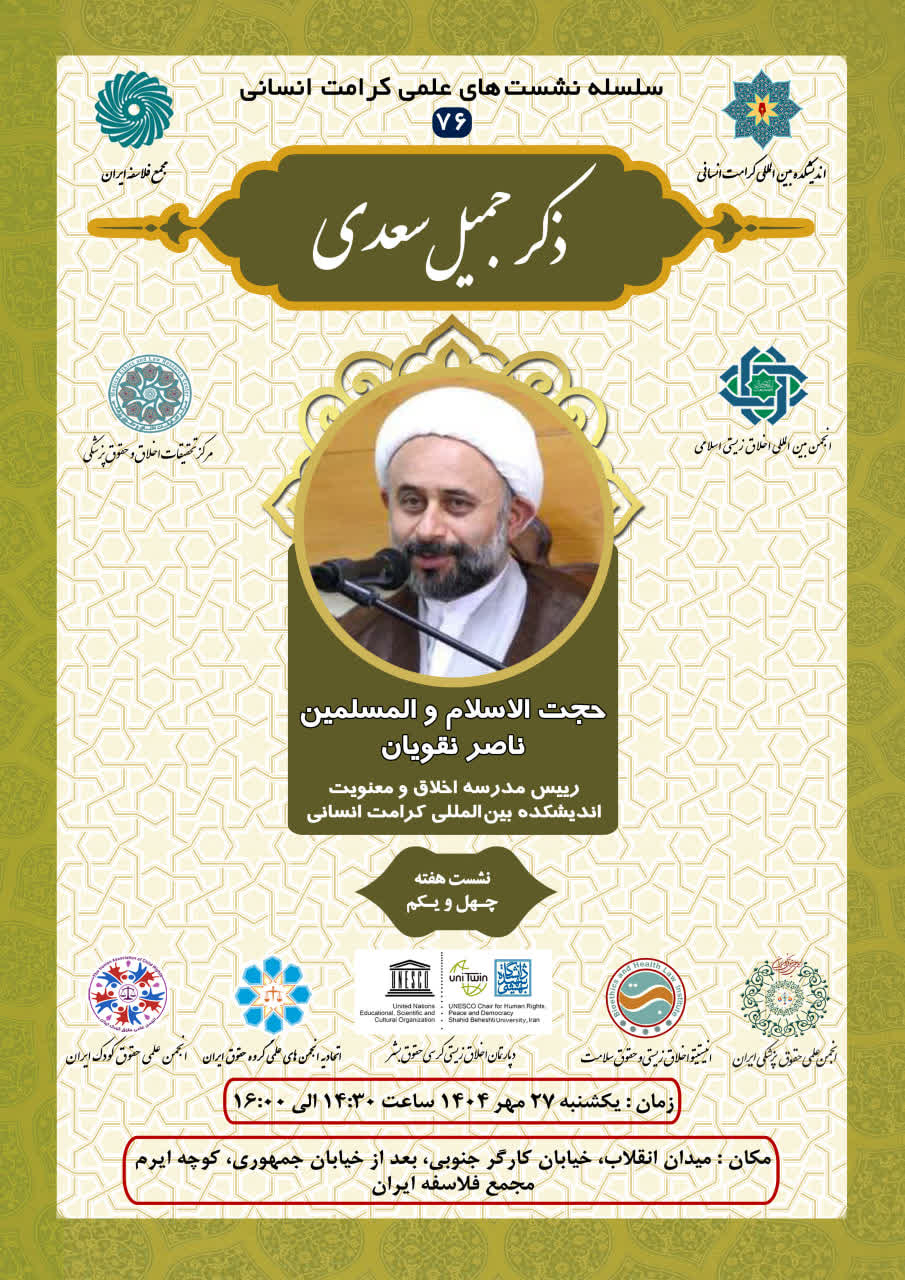 سلسله نشستهای علمی کرامت انسانی ؛ نشست هفته چهل و یکم (۷۶) ذکر جمیل سعدی