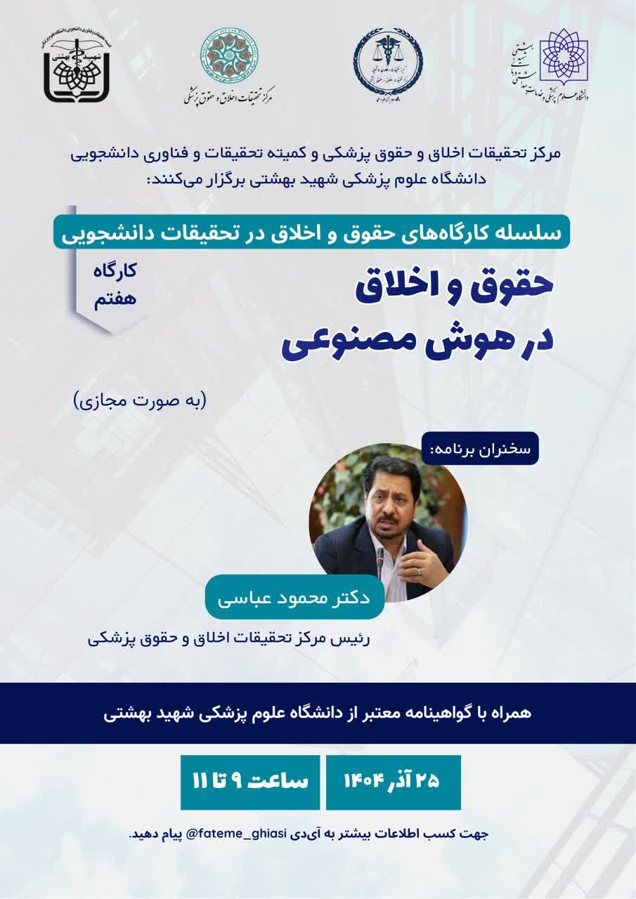 اطلاعیه برگزاری سلسله کارگاه های حقوق و اخلاق در تحقیقات دانشجویی؛ حقوق و اخلاق در هوش مصنوعی