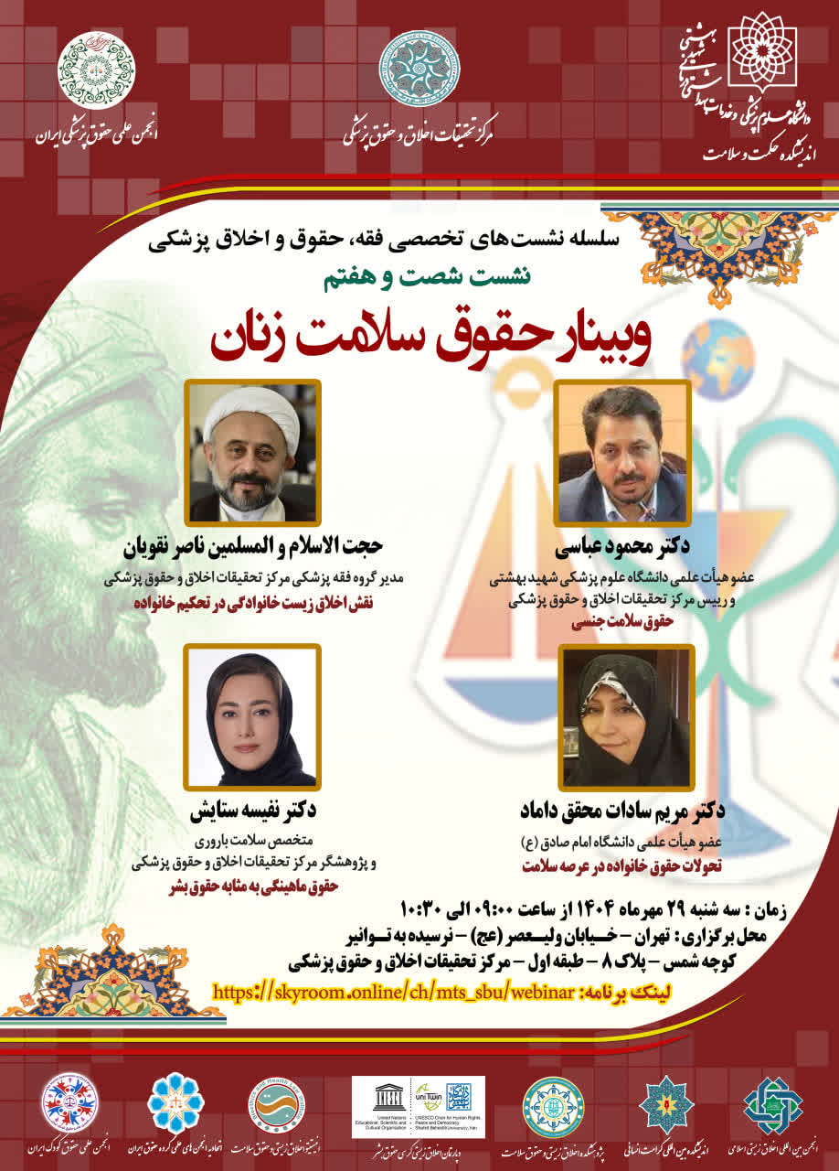 اطلاعیه برگزاری سلسله نشستهای تخصصی فقه، حقوق و اخلاق پزشکی ؛ نشست شصت و هفتم ؛ وبینار حقوق سلامت زنان