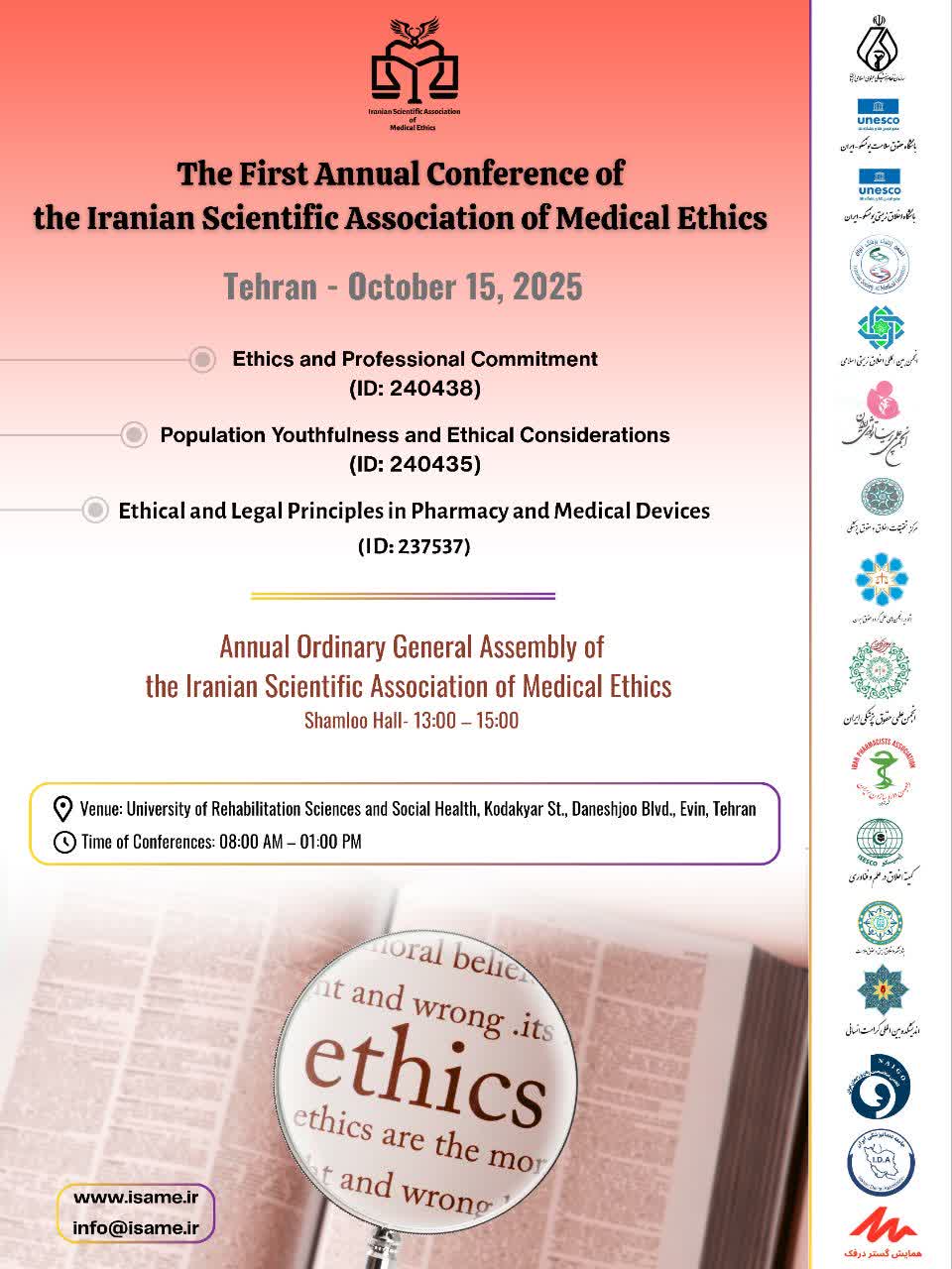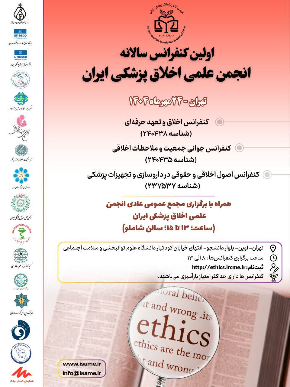 اطلاعیه برگزاری اولین کنفرانس سالانه انجمن علمی اخلاق پزشکی ایران