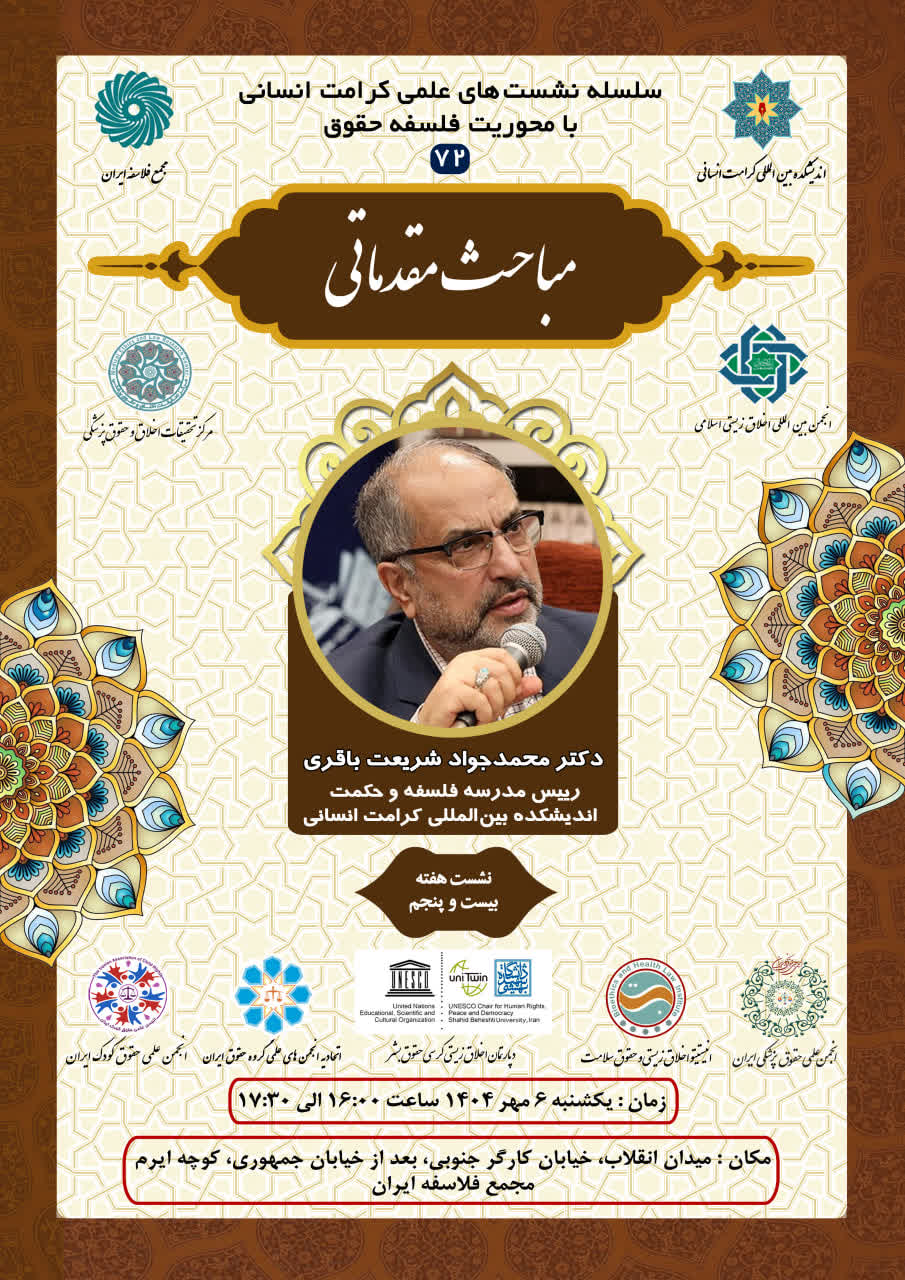 اطلاعیه برگزاری سلسله نشستهای علمی کرامت انسانی با محوریت فلسفه حقوق ؛ نشست هفته بیست و پنجم؛ مباحث مقدماتی (۷۲)